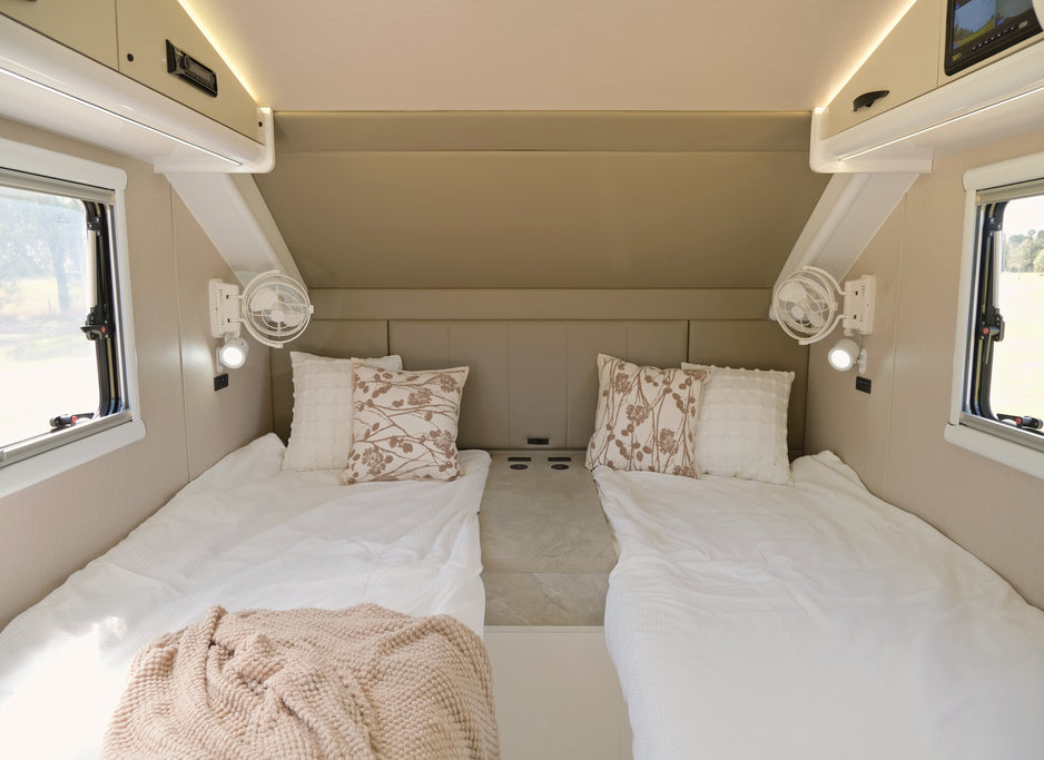 - Efficient Plumbing: Truma 14L hot water system, dual fresh water tanks, inline gas plumbing.