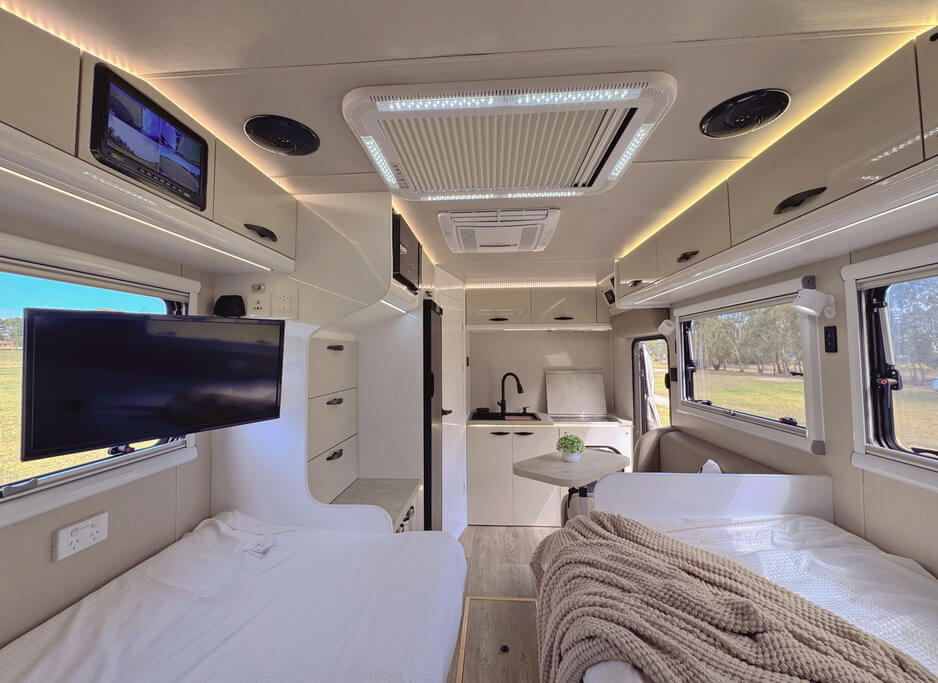 - Premium Comfort: Roof-mounted air conditioning that can runs off grid.