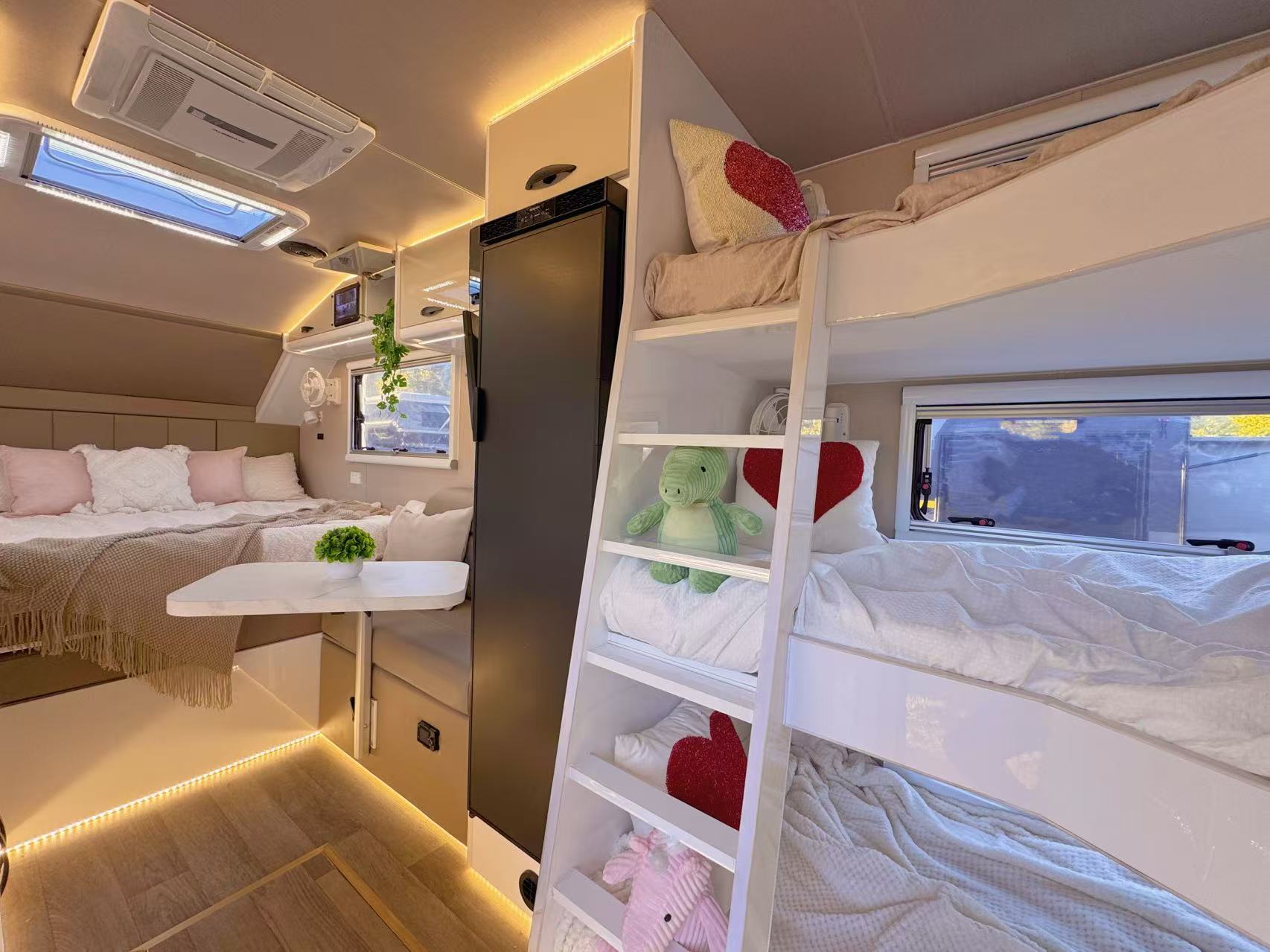 - Premium Comfort: Dometic Roof-mounted air conditioning that can run off grid.