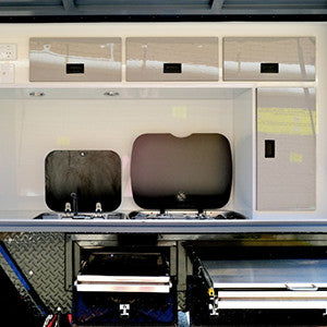 Comes with rugged off-road tyres with 2 spares, all independent suspension and with our own personal touch, we include a blue LED light handle in the offroad hybrid caravan.